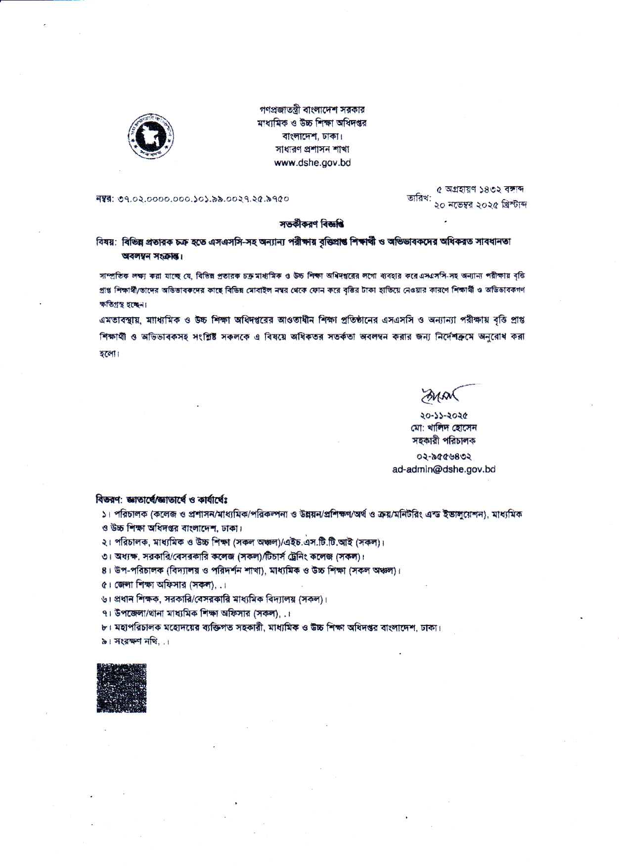 বিভিন্ন প্রতারক চক্র হতে এসএসসি-সহ অন্যান্য পরীক্ষায় বৃত্তিপ্রাপ্ত শিক্ষার্থী ও অভিভাবকদের অধিকতর সাবধানতা অবলম্বন সংক্রান্ত।