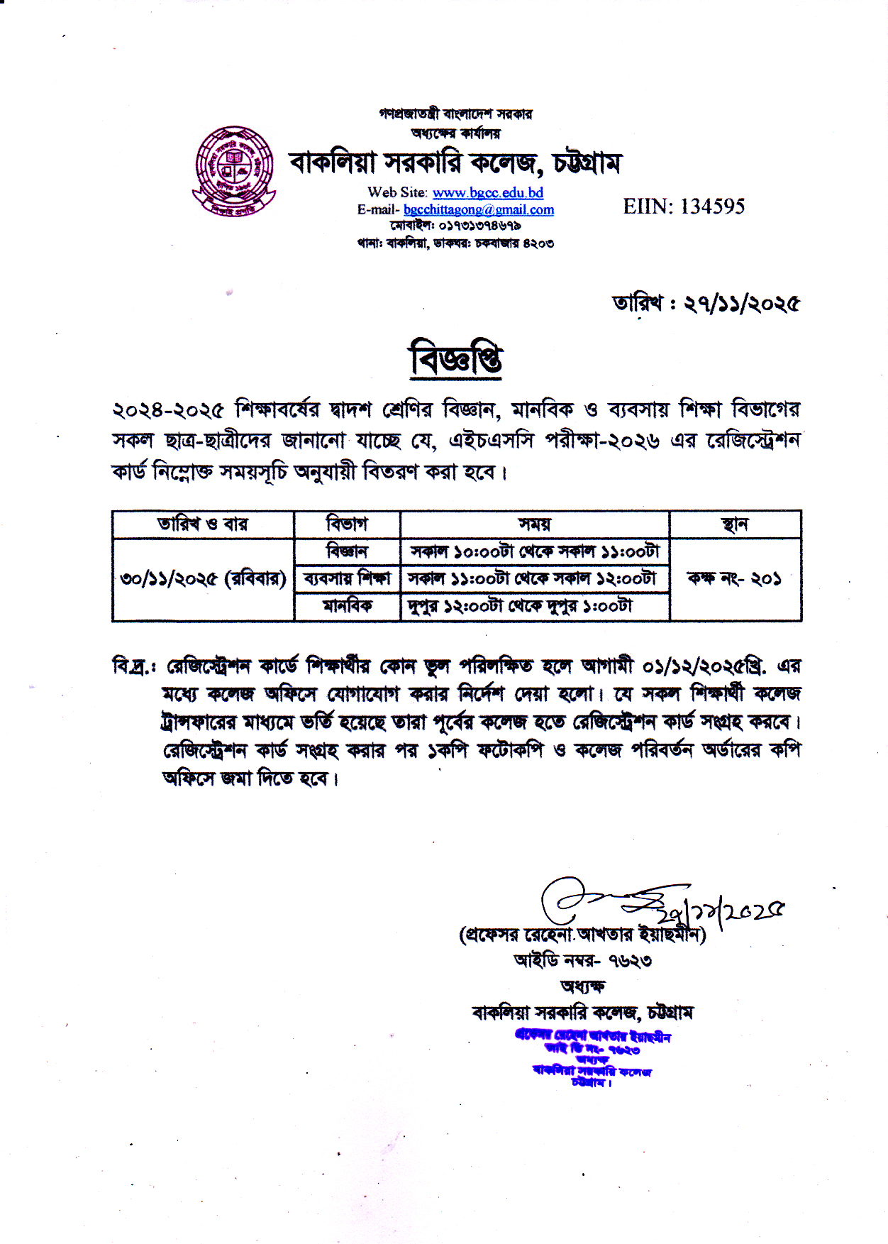 এইচএসসি পরীক্ষা-২০২৬ এর রেজিস্ট্রেশন বিতরণ সংক্রান্ত বিজ্ঞপ্তি